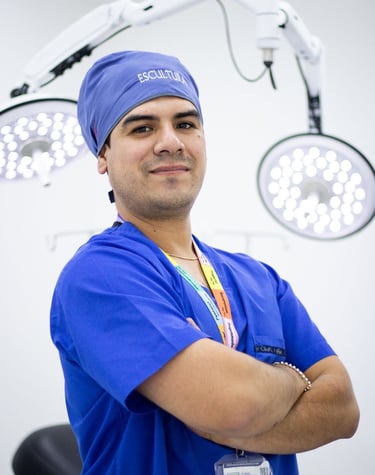 Es un médico mexicano especializado en procedimientos de Lipoescultura de alta definición (HD), contorno corporal y rejuvenecimiento facial.